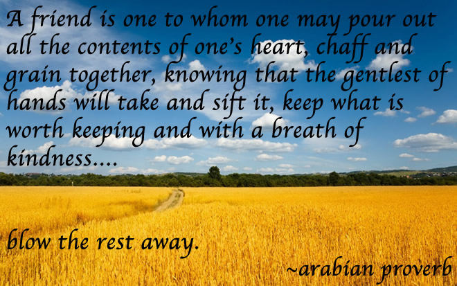 Once I shared this quote with a friend of mine because she has such an ear. An ear, as they say, that opens mouths. While we stopped to discuss the above conundrum, what really mattered was that it meant quite a bit to acknowledge the support she provides for me and for others.