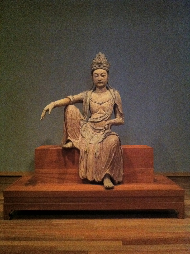 When I was in grade school, my brother and I used to walk from school to the art museum every afternoon where we would wait for my mother who had art lessons, and then the three of us would go home together. Quite often, I would wander the various galleries and look at all the artwork. The gallery guards were so tolerant of my comings and goings, as long as I was quiet. One of my favorite pastimes was to go and visit the statue you see above here. While this early Guanyin sculpture is described as being male, it is said that the boddhisattva Kuan Yin is venerated in a fashion similar to that of the Virgin Mary in Christian traditions. People find great solace standing before such images.